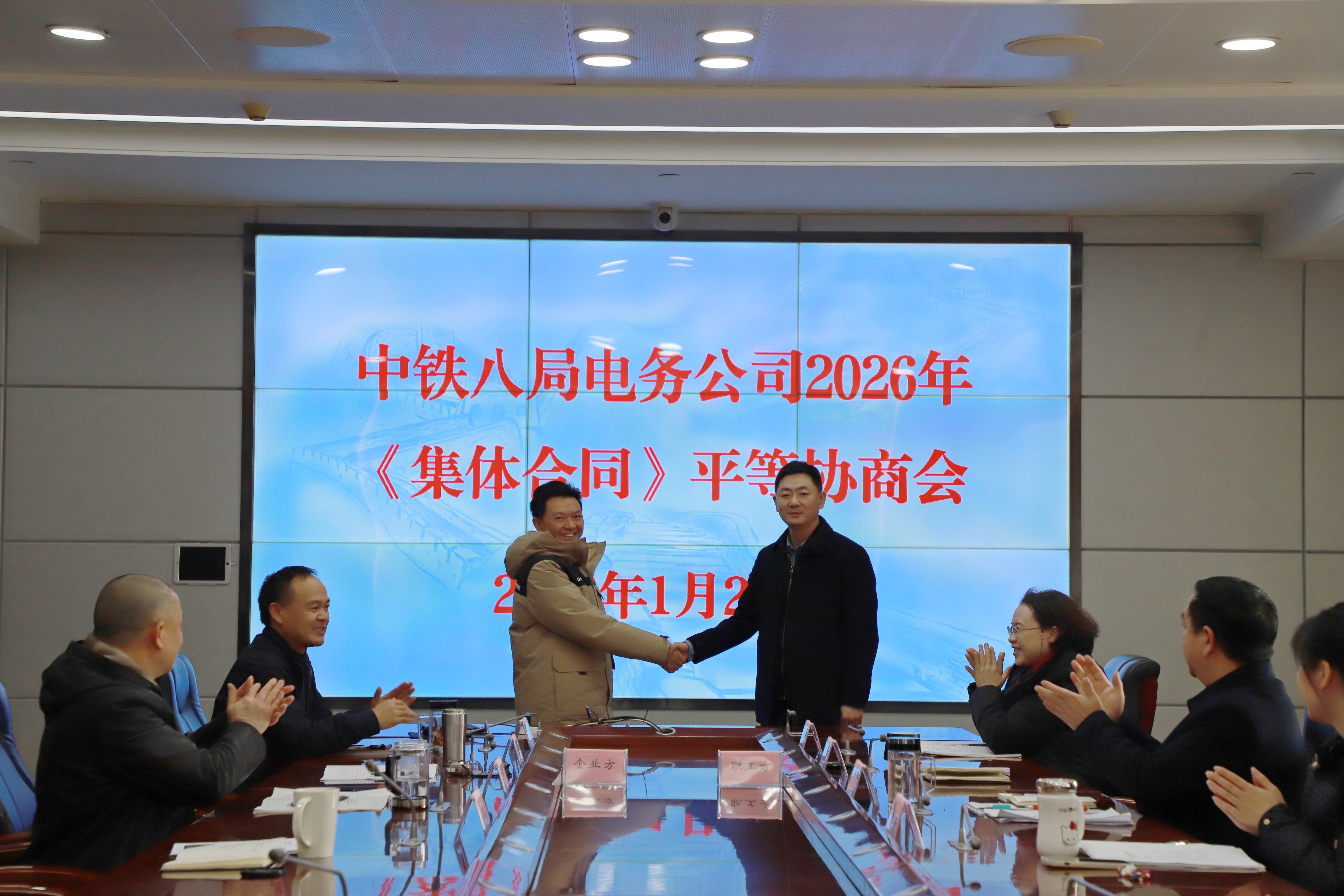 1月26日,公司在本部召开了2026年《集体合同》平等协商会。会议旨在落实企业与职工平等协商机制,切实保障劳动关系双方合法权益,持续激发职工工作积极性、主动性与创造性,着力构建和谐稳定劳动关系,为企业高质量发展奠定坚实基础。公司总工程师胡基冬、工会主席李豪放分别作为企业方、职工方首席代表出席会议。