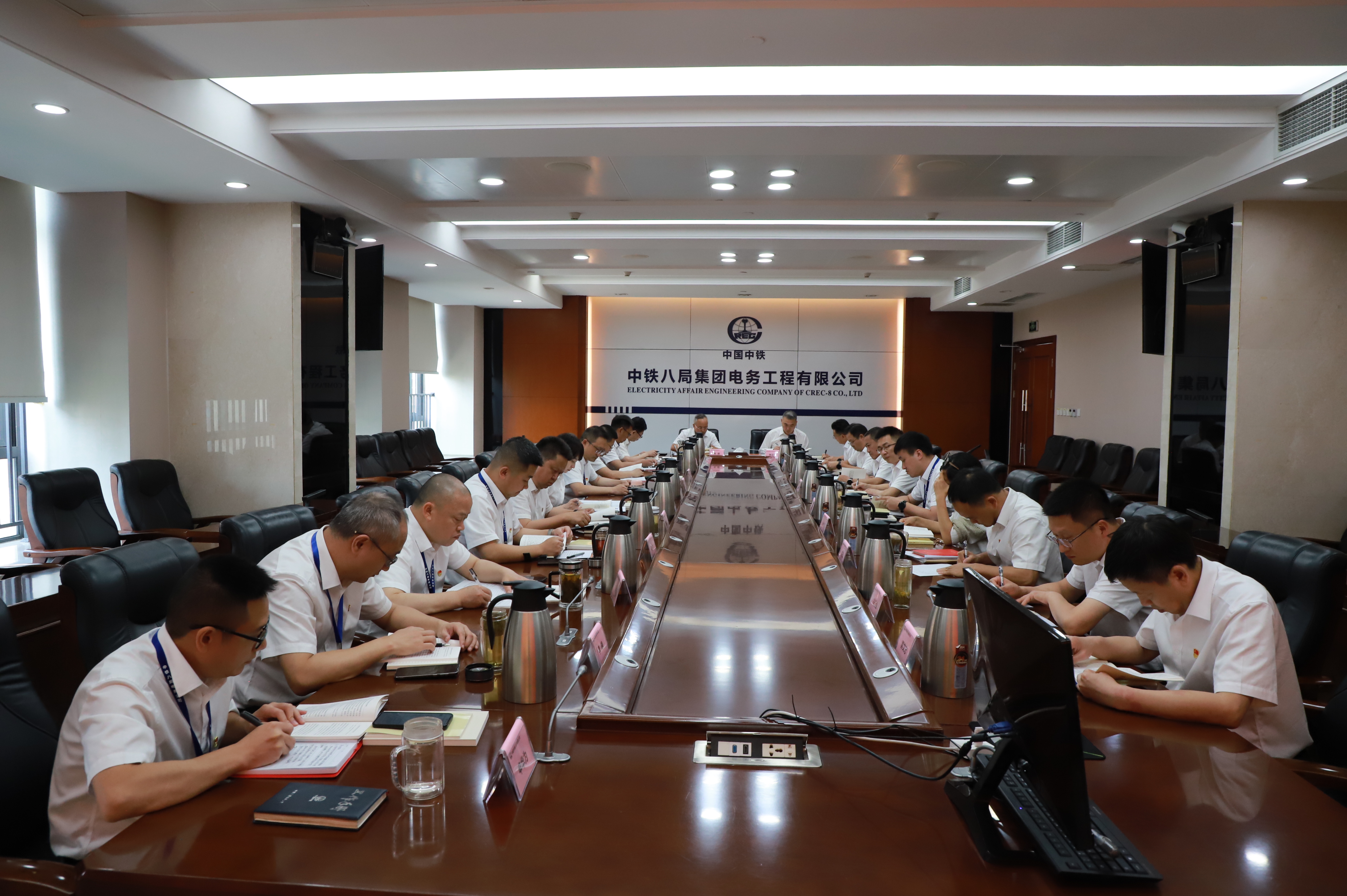 6月4日,公司党委在蓉举行深入贯彻中央八项规定精神学习教育读书班(第二期)暨2025年第3次理论学习中心组集体学习会。中铁八局电务公司党委书记、执行董事张健主持会议并讲话,其他中心组成员及本部部门负责人参加学习。