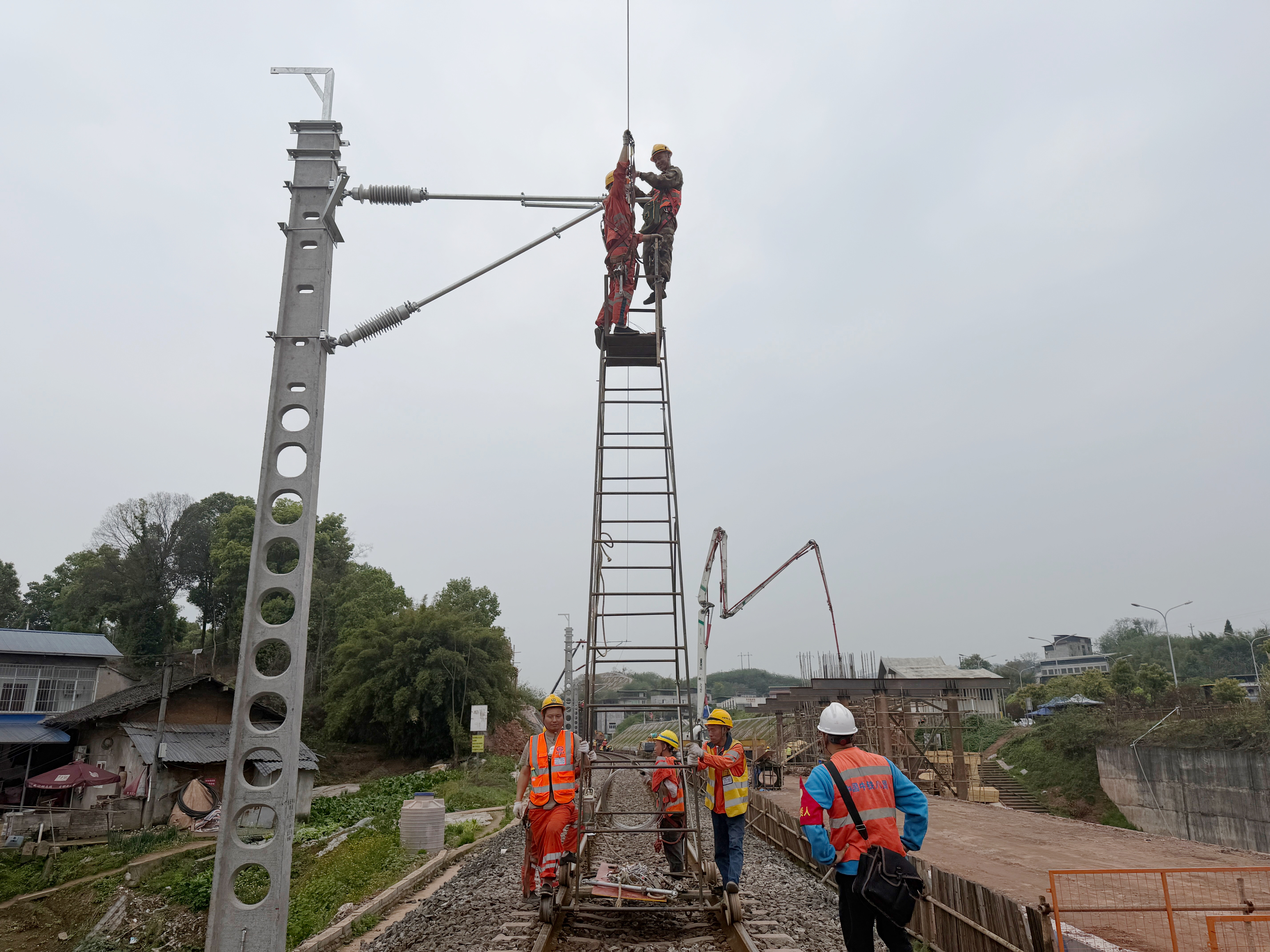 3月27日,由中铁八局电务公司接触网三项目部负责施工的成渝铁路重庆站至江津站段改造工程施工2标首条接触网承力索架设成功,标志着该段站后“四电”工程接触网专业进入全面攻坚阶段,为后续线路送电、联调联试奠定了坚实基础。