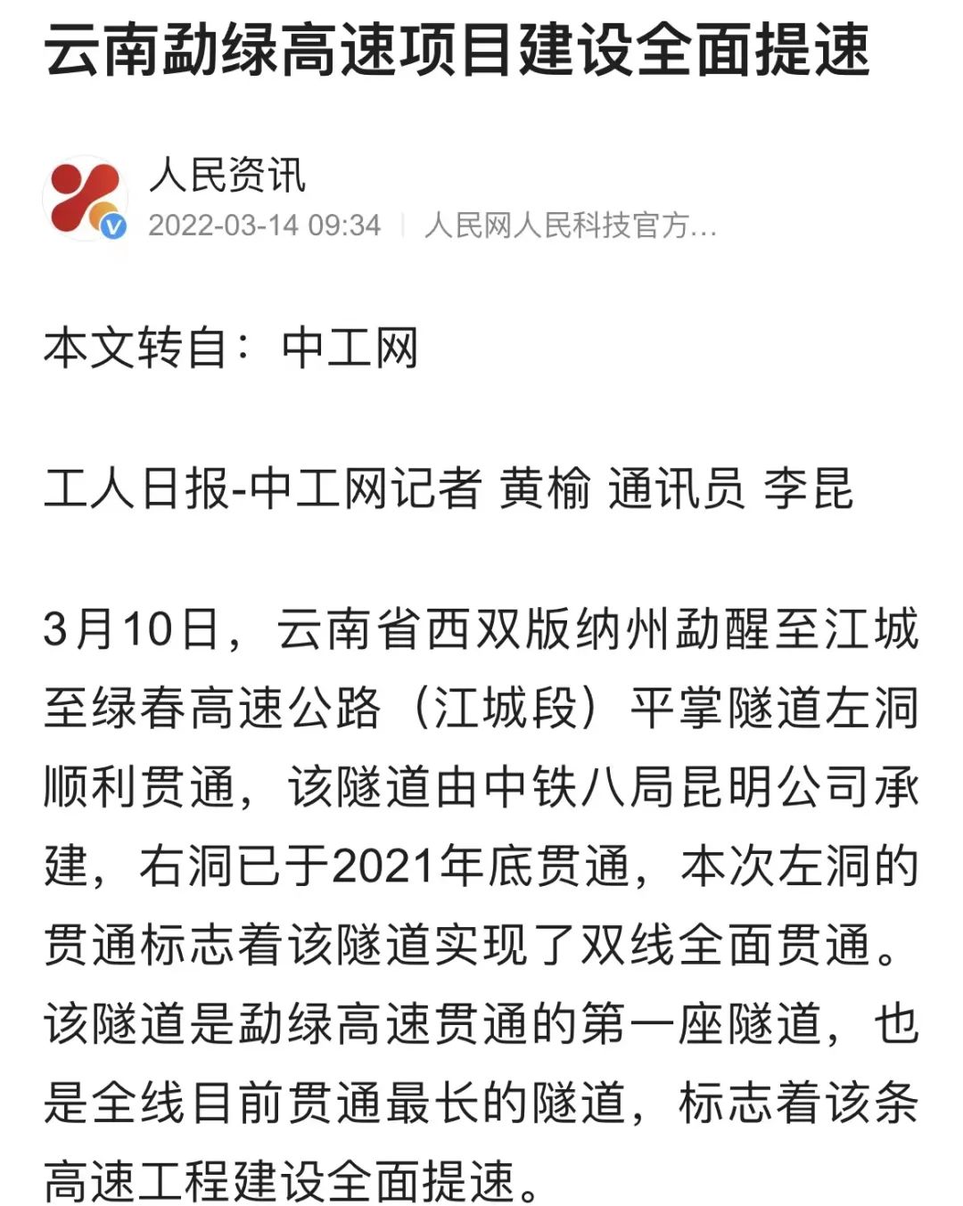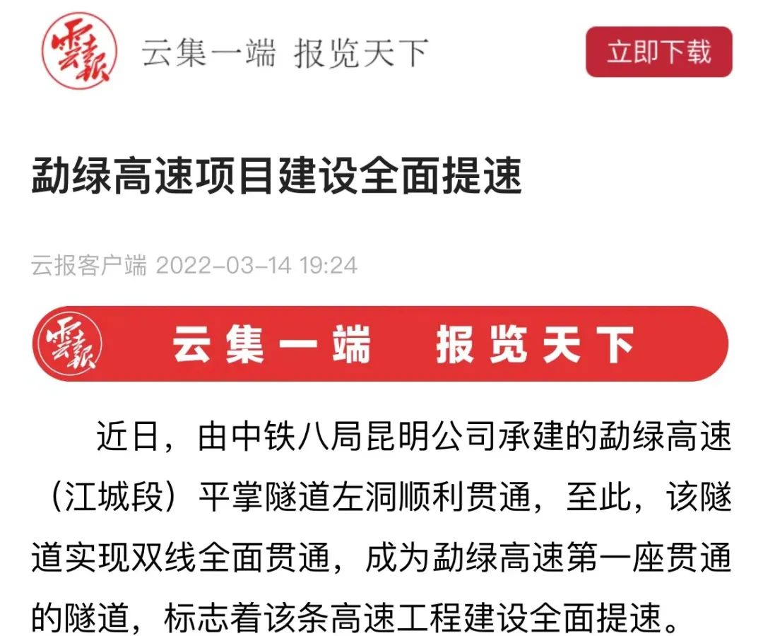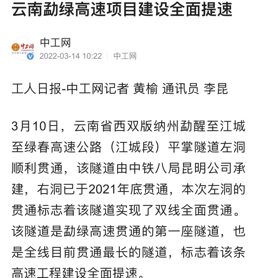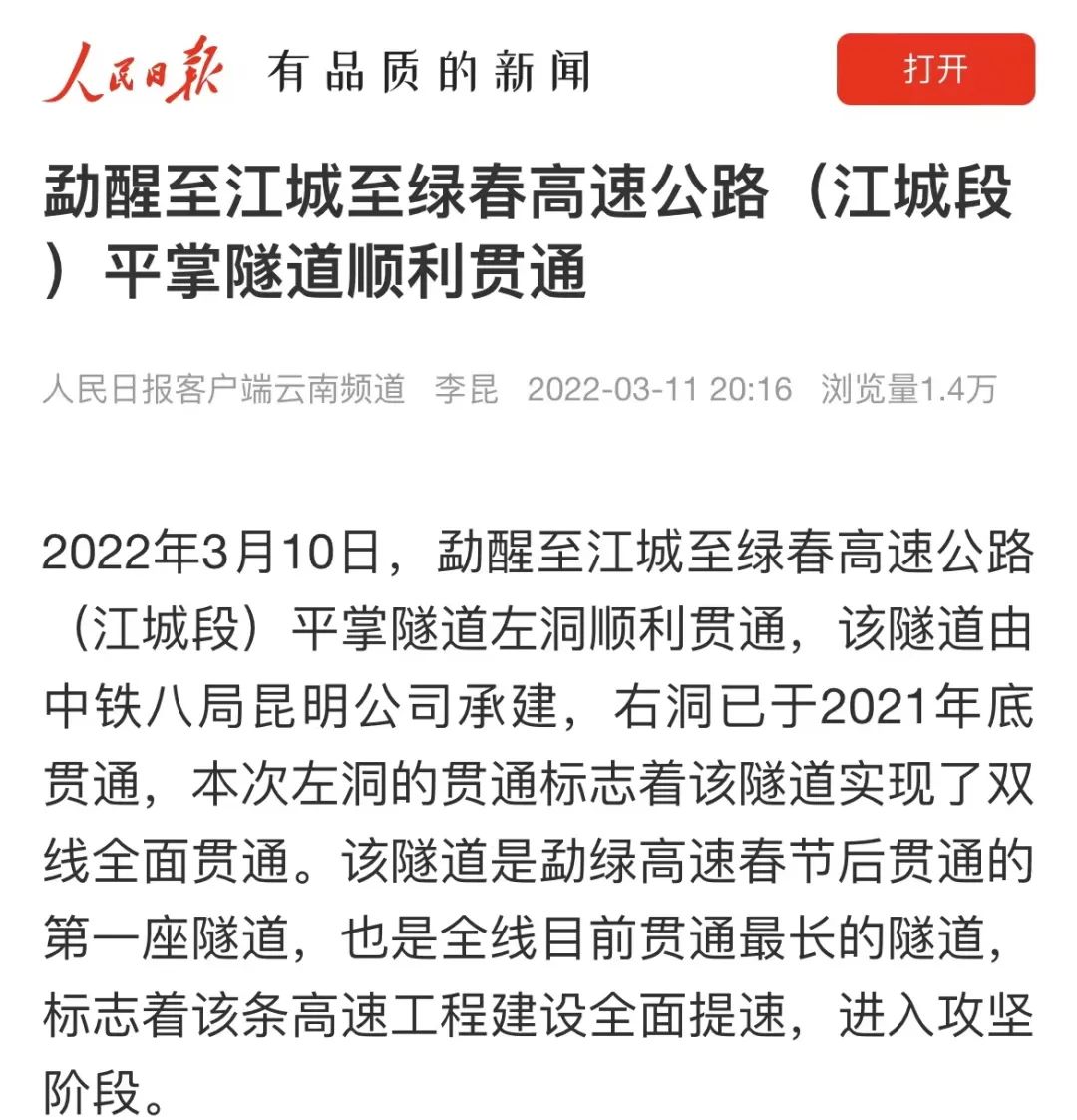 【人民日报】多家中央级主流媒体关注勐绿高速项目平掌隧道顺利贯通