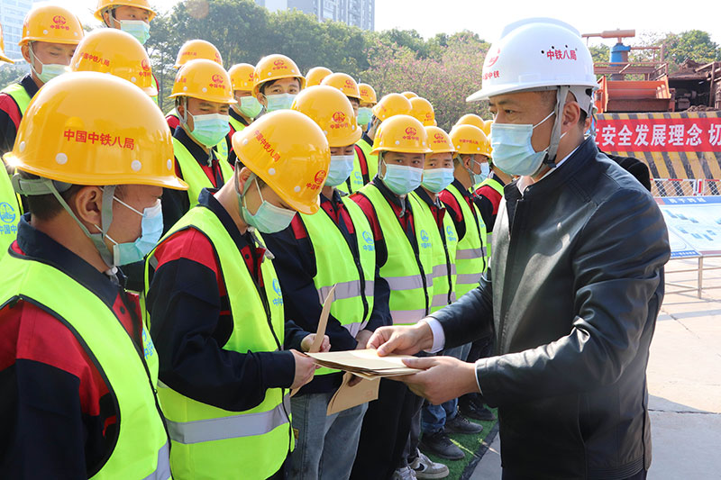 1月7日,四川省人民政府驻广州办事处主任王德胜到广州地铁十三号线作业现场开展“进工地送慰问”活动,项目部30名川籍务工人员参加活动。